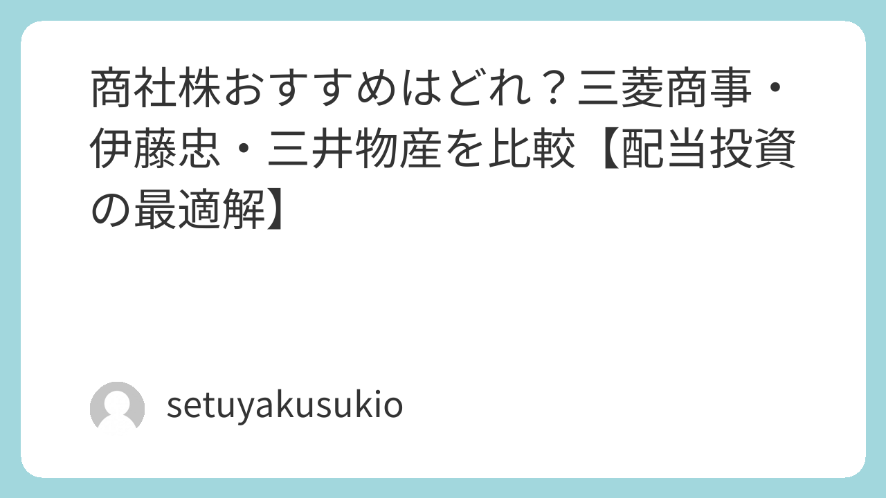 👉 商社株はどれも優秀ですが、目的によって最適解が変わります。
