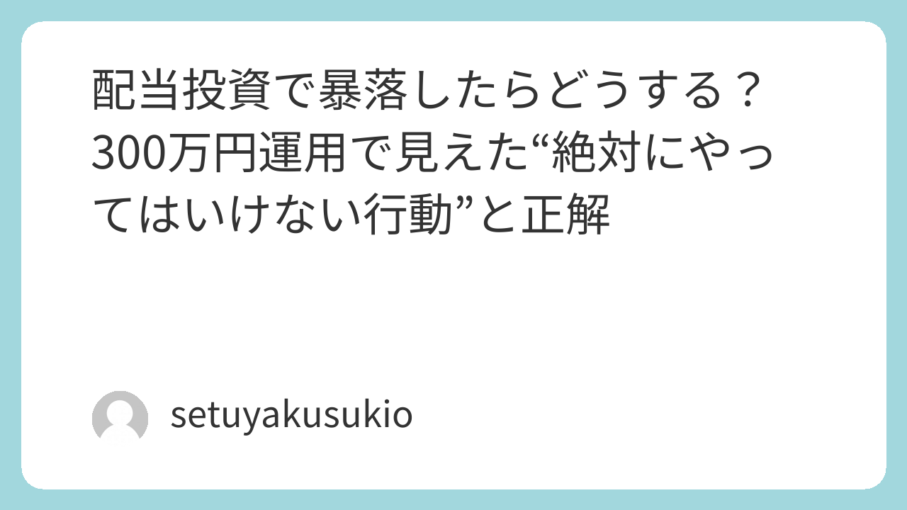 👉 配当投資の成否は「暴落時の行動」でほぼ決まります。