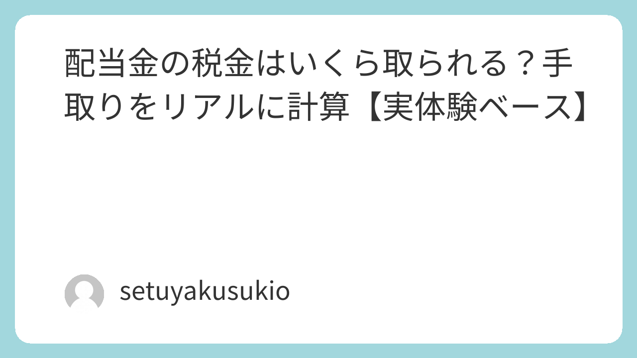 配当投資は「税金込み」で考える必要があります。