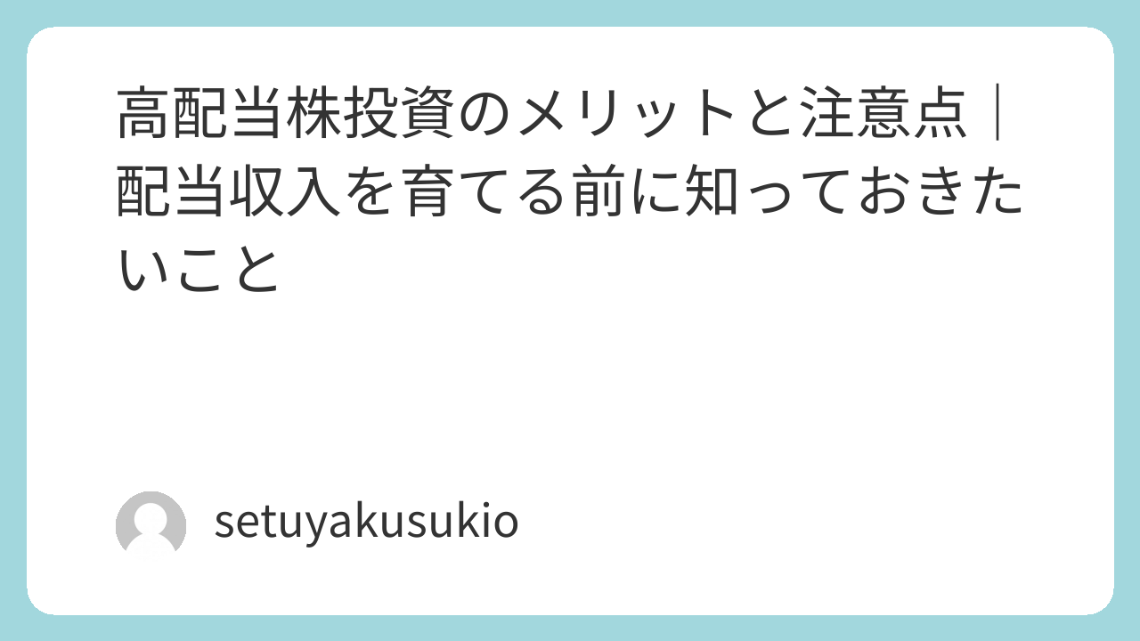 一方で、配当は業績に左右され、株価も動き、税金の扱いも確認が必要です。高配当株は「楽に増える投資」ではなく、配当・業績・価格変動・税金をまとめて管理する投資だと考えると、失敗しにくくなります。