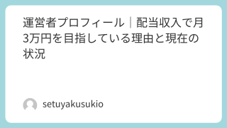 運営者プロフィール|配当収入で月3万円を目指している理由と現在の状況