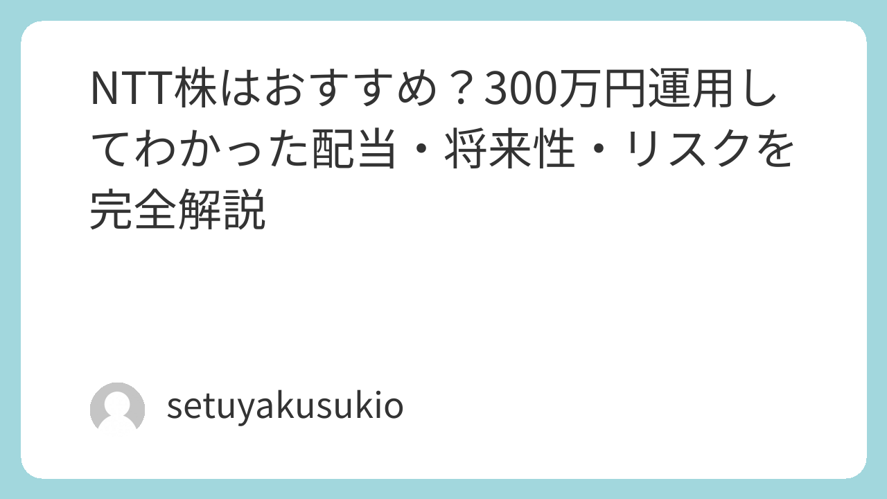 👉 NTTは爆発力はないが、長期で“安定して配当をもらい続けたい人”には最適な銘柄です。